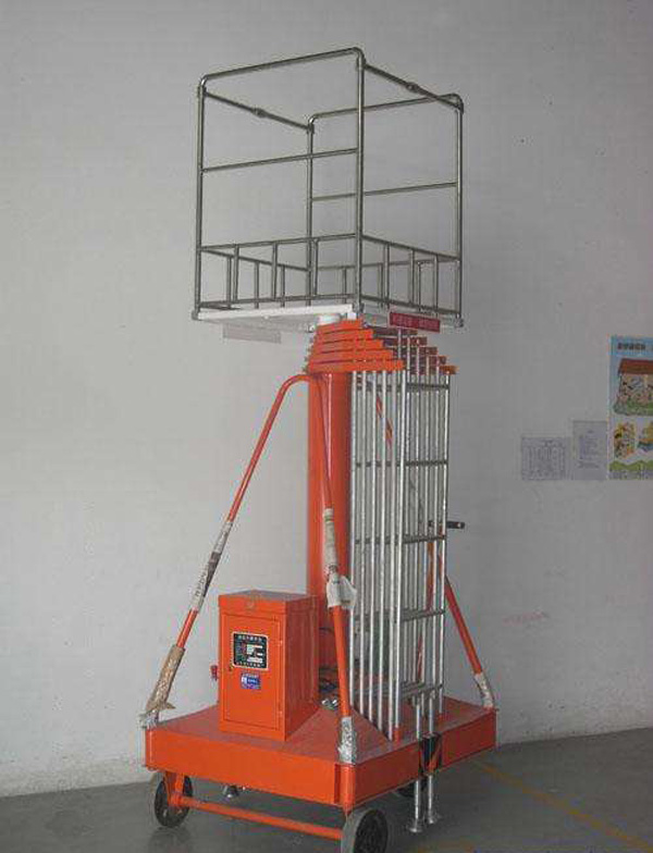 套缸式升降平臺為多級液壓缸直立上升,液壓缸高強度的材質和良好的機械性能,塔形梯狀護架,使升降平臺有更高的穩定性。即使身處50米高空,也能感受其優越的平穩性能。主要用于電力線路、照明電器、高架管道等安裝維護,高空清潔等單人工作的高空作業。主要產品分為:單梯防旋轉、雙梯防旋轉、可傾斜式液壓升降平臺。