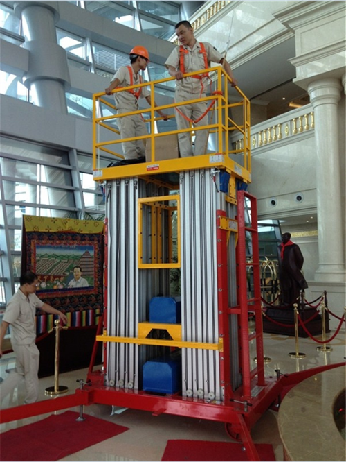 鋁合金升降機系列產品為多為室內型,廣泛適用于星級酒店,大型超市等各行業大廳、廠房內的高空作業,具有升降平衡,操作方便,能進入一般門廳,可隨意進出電梯且耗電少、無污染、工作時不傷地面,可用于貼墻工作及探出作業,工作無死角。鋁合金式液壓升降平臺產品采用高強度優質鋁合金材料,動力經過液壓泵站帶動鏈條傳動,結構合理設計緊湊。鋁合金升降作業平臺根據升高高度分為單柱、雙住、三柱和四柱式,具有造型美觀、體積小、重量輕、升降平穩等優點,并能夠上下操作,升降平臺廣泛用于酒店賓館、車站候車室、機場候機樓、影劇院、展覽館、體育館等場所,是保養機具、油漆裝修、調換燈具、電器、清潔保養等用途的最佳安全高空作業伴侶。