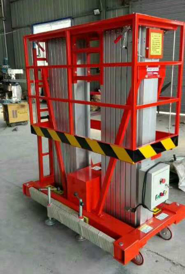 鋁合金升降機系列產(chǎn)品為多為室內(nèi)型,廣泛適用于星級酒店,大型超市等各行業(yè)大廳、廠房內(nèi)的高空作業(yè),具有升降平衡,操作方便,能進入一般門廳,可隨意進出電梯且耗電少、無污染、工作時不傷地面,可用于貼墻工作及探出作業(yè),工作無死角。鋁合金式液壓升降平臺產(chǎn)品采用鋁合金材料,動力經(jīng)過液壓泵站帶動鏈條傳動,結(jié)構(gòu)合理設(shè)計緊湊。鋁合金升降作業(yè)平臺根據(jù)升高高度分為單柱、雙住、三柱和四柱式,具有造型美觀、體積小、重量輕、升降平穩(wěn)等優(yōu)點,并能夠上下操作,升降平臺廣泛用于酒店賓館、車站候車室、機場候機樓、影劇院、展覽館、體育館等場所,是保養(yǎng)機具、油漆裝修、調(diào)換燈具、電器、清潔保養(yǎng)等用途的伴侶。