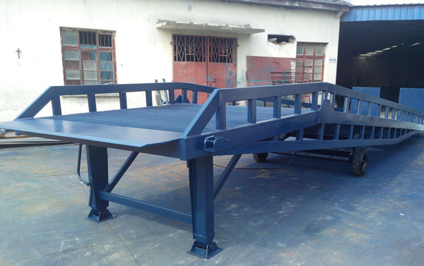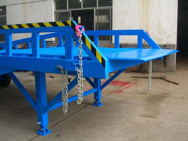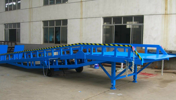 移動式液壓登車橋主要用于無裝卸設(shè)備的貨臺及流動裝卸場所,可與叉車配合使用,是貨物裝卸專用輔助設(shè)備。產(chǎn)品可達到的最低高度為1.1米,最高高度為1.8米,可以根據(jù)貨車高度進行調(diào)節(jié),是裝卸貨物不可缺少的升降液壓設(shè)備之一。移動式液壓登車橋的主要作用是在地平面與車廂之間搭起一座橋,有了它,叉車能直接從地面攜帶貨物駛?cè)肫囓噹麅?nèi)部,進行批量裝卸作業(yè)。使用時前板架在貨車車廂上,起到承載重量的作用,減少了貨物重量對液壓設(shè)備的壓力,保證了液壓登車橋的使用壽命,從而達到長期使用的目的。借助液壓登車橋,叉車能直接駛?cè)肫嚰b箱內(nèi)部進行批量裝卸作業(yè)。