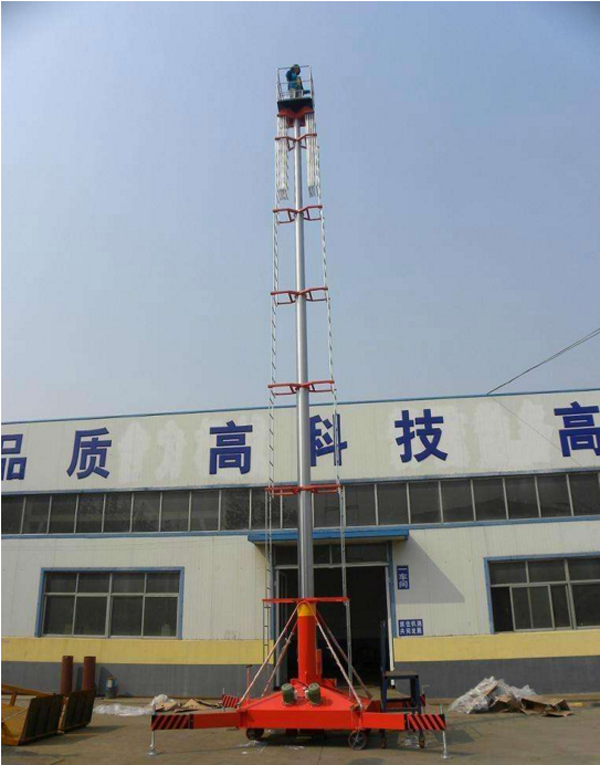 套缸式升降平臺為多級液壓缸直立上升,液壓缸高強度的材質和良好的機械性能,塔形梯狀護架,使升降平臺有更高的穩定性。即使身處50米高空,也能感受其優越的平穩性能。主要用于電力線路、照明電器、高架管道等安裝維護,高空清潔等單人工作的高空作業。主要產品分為:單梯防旋轉、雙梯防旋轉、可傾斜式液壓升降平臺。